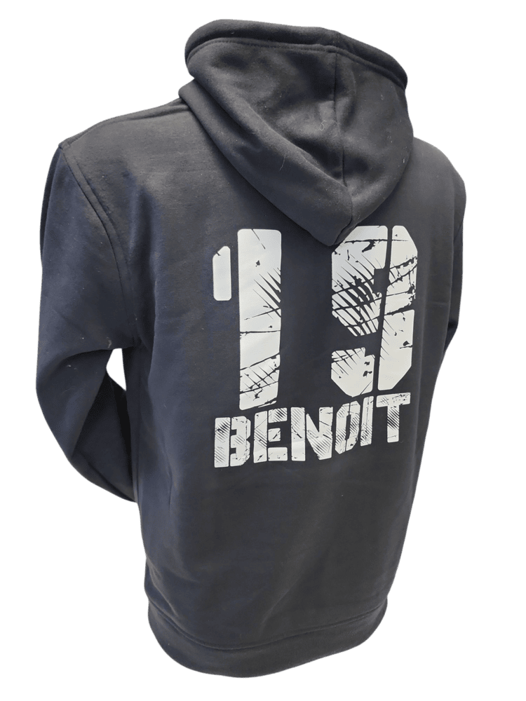 Questa felpa in blu navy, dal design semplice e d’impatto, può essere personalizzata sul retro con un numero di 2 cifre e un nome a tua scelta – perfetta per portare sempre con te il nome del tuo cane… come una vera felpa da squadra